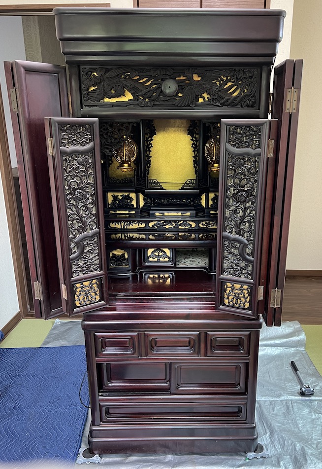 仏壇クリーニング 岩科様 2026-01-07 最終更新日時 : 2026-01-07 admin_ueda_j 施工前 施工後 新築を建てました。ご先祖様のお家も綺麗にしないと申し訳ないという事で仏壇洗浄のご依頼を受けました。50年経過してるのでかなり汚れがありましたが綺麗にする事ができました。喜んでいただいて良かったです。