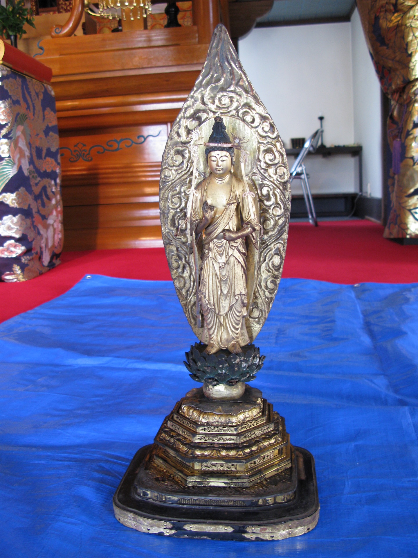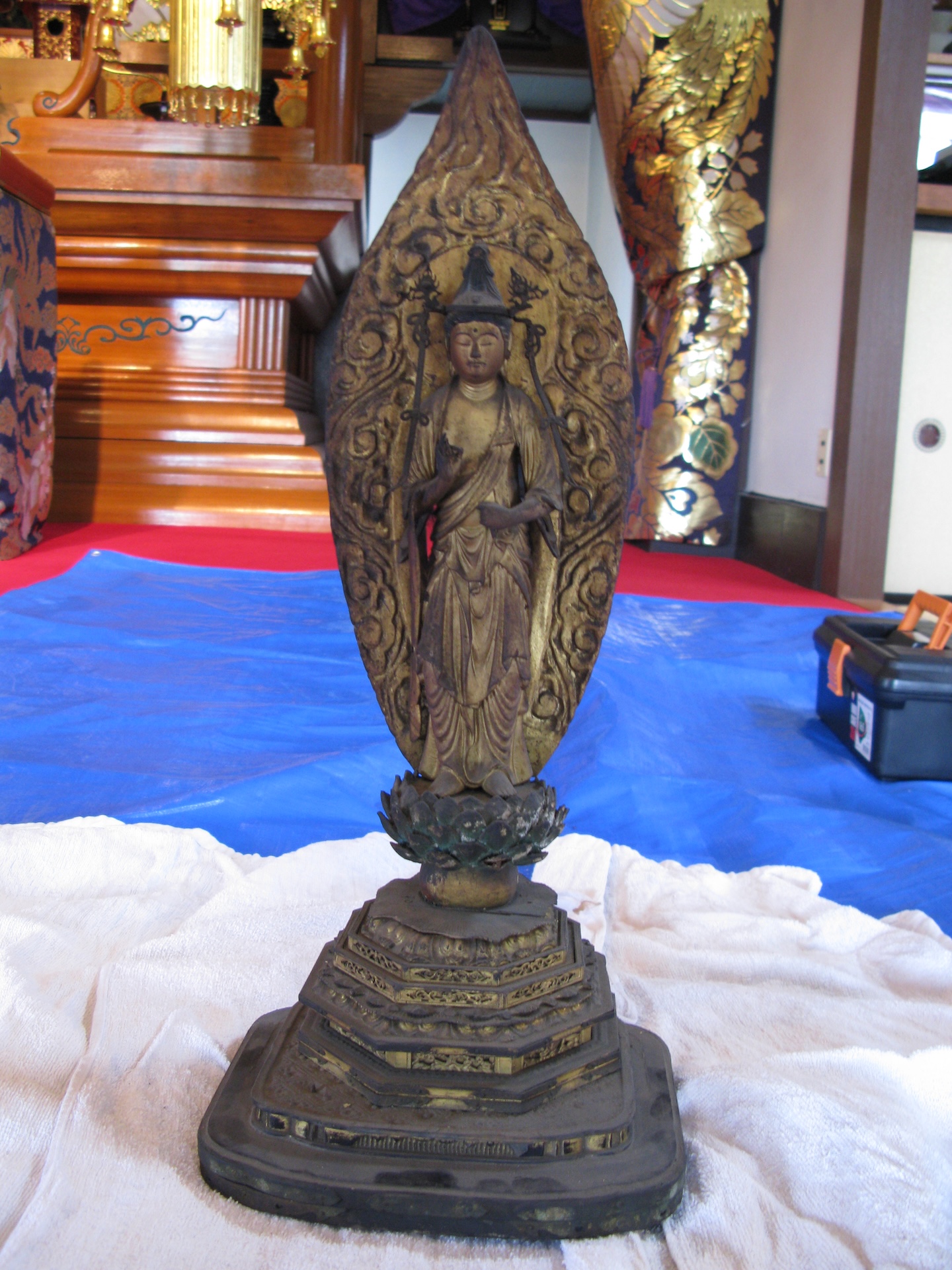 旭栖院様 観音像洗浄 2026-01-03 最終更新日時 : 2026-01-06 admin_ueda_j 施工前 施工後 とにかく洗浄だけでいいとのご依頼でした。見えなかった観音様のお顔の表情や台座漆部分もしっかり色が現れました。