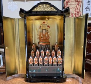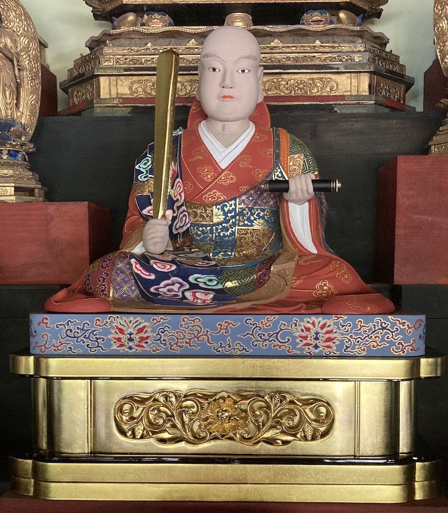 日蓮宗 妙現寺様 日蓮聖人像修復(お洗濯) 2026-01-14 最終更新日時 : 2026-01-14 admin_ueda_j 施工前 施工後 お上人、総代さんより見積もりのご依頼がありました。行ってみると明らかに肌色がおかしい。持者、衣からしてどう考えても日蓮聖人。最初クリーニングのご依頼でしたが傷み具合、まぶたの切れ等説明させていただくとお洗濯のほうのご希望が強かったのでそちらに変更させてもらいました。推測するに護摩などを焚かれて彩色が燻されたのではないかとお伝えしました。実際洗ってみると肌色が出てきました。すっかり見違えって大変喜ばれました。