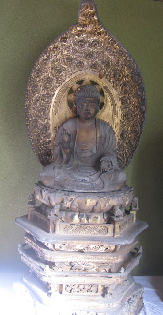 現状をなるべく変えないで表面だけ綺麗にできる?というご要望で施工させていただきました。お顔がすごく優しくなったのが印象的でした。こんなお顔されてたんですね。台座の一部がハゲていたので違和感なく金箔を押したほうがいいかなと個人的には若干思いましたが方丈さん意向に沿いそのままにしておきました。