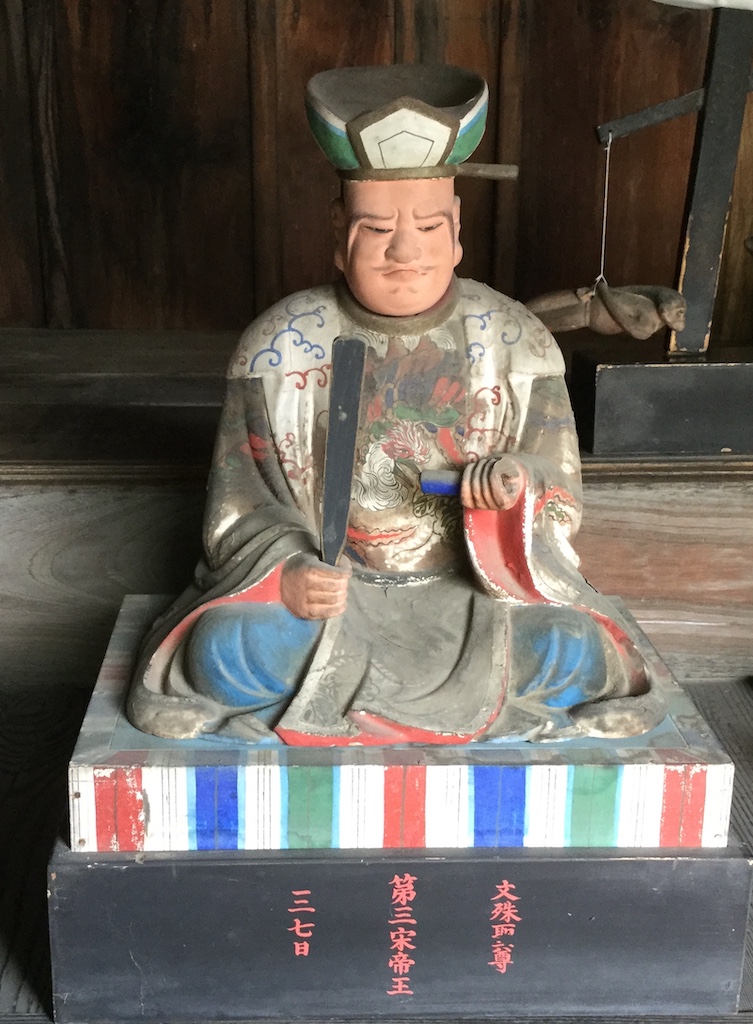 臨済宗 慈光院様 第三宋帝王像洗浄補筆 2026-01-21 最終更新日時 : 2026-01-21 admin_ueda_j 施工前 施工後 時間が経過したなりに綺麗にして欲しいとご依頼を受けました。閻魔様は団体様でいらっしゃるので一部の方が劣化が激しいとどうしてもそちらにつられて彩色を施さなければならなくなります。この閻魔様は比較的劣化がおとなしい感じでした。ただ、雨漏りによるシミと鳳凰が白地なのでくすんできてしまいよくわからない感じでした。ここに羽があるだろうという検討は付きますのでその辺りを強調して鳳凰を浮き立たせることにしました。台座もくすみながら少し色を入れる感じに仕上げました。, 仏像, 修復, 洗浄