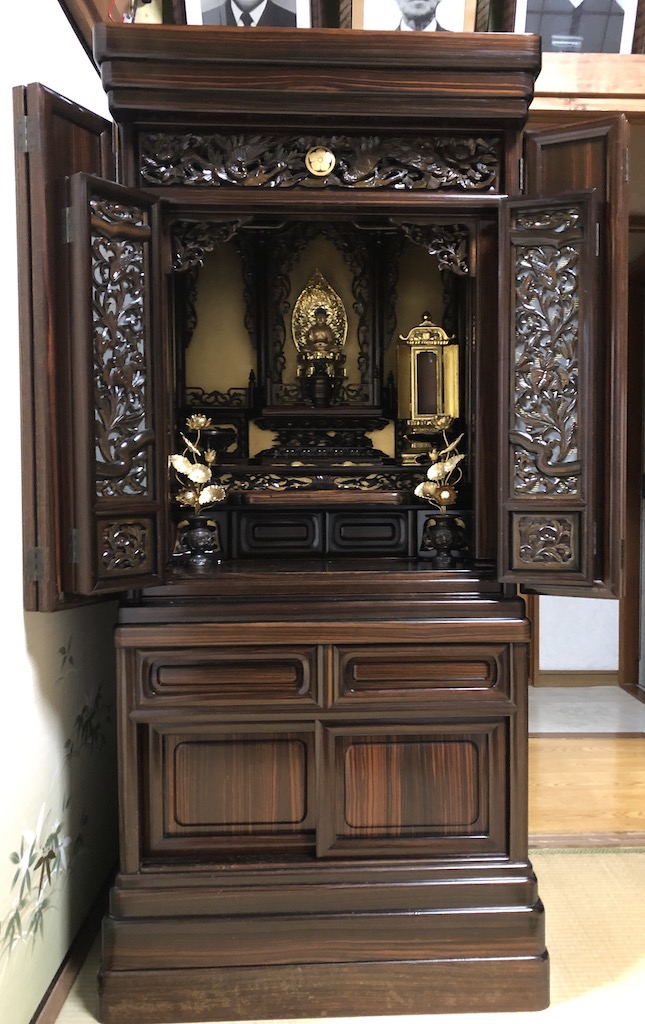仏壇クリーニング 太田様 2026-02-25 最終更新日時 : 2026-02-25 admin_ueda_j 施工前 施工後 綺麗好きな奥様が亡くなられたので綺麗にしてから送りたいとのことでした。このタイプの仏壇は汚れがわかりやすく黒檀の縞模様が燻んでしまいます。汚れが乗りやすいのかわかりませんが茶色い汚れがかなり出てきます。汚れを取って艶出しをするとすごく綺麗に戻る仏壇です。紗を代えて金紙を交換すると本来ある姿に戻りました。娘さんたちも喜んでましたが旦那さんが一番喜んでいたかもしれません。ありがとうございました。
