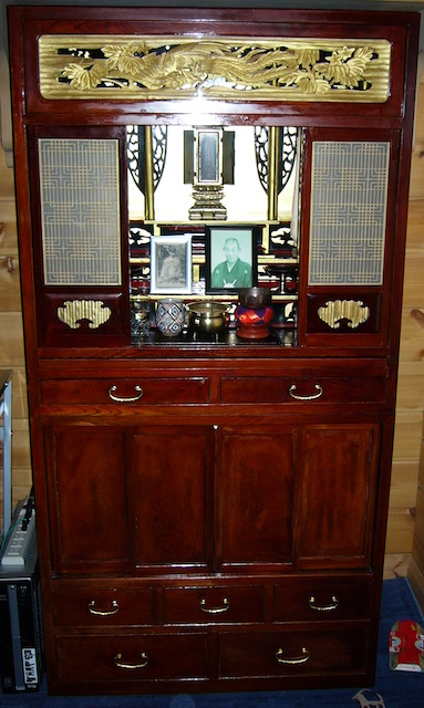 うちの仏壇は関東仏壇と言って引き戸がある仏壇です。気づいた時から引き戸のガラスが割れておりセロテープで押さえてありました。大人になって気が向いたので引き戸を外して掃除しようとしたら、引き戸の裏に小さい釘が8本刺さっておりそれで枠を押さえていることに気づきました。釘を外してガラス屋さんに行って新しいガラスを入れたらおじいちゃんが大変喜んでくれました。はち切れんばかりの笑顔だったので鮮明に覚えております。元々綺麗好きなのでこんなに喜んでくれるならと仕事を始めました。初期の頃ですので素人みたいに仏壇の中に遺影が入っているのはご愛嬌です。おじいちゃんも写ってますね。喜んでくれてるかな。